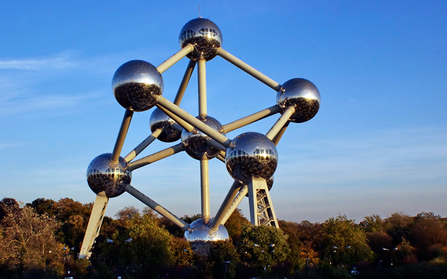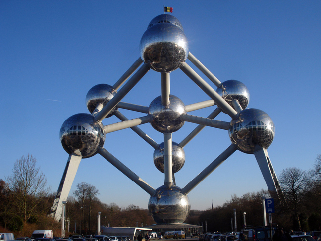 Το ύψους 103 μέτρων Atomium αναπαριστά την κυψελίδα ενός κρυστάλλου σιδήρου, μεγεθυμένη κατά 165 δισεκατομμύρια φορές.