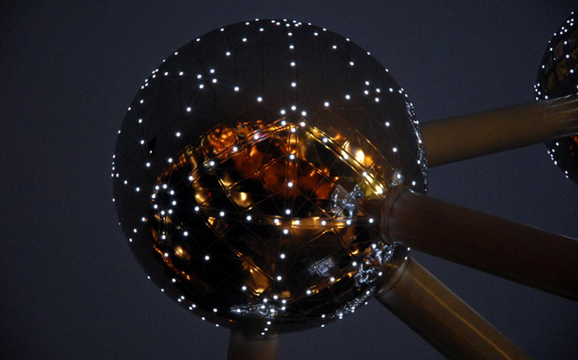 Το βράδυ, το θέαμα που προσφέρει το Atomium είναι μοναδικό, με 2.970 φώτα LED να δημιουργούν ένα παραμυθένιο θέαμα.