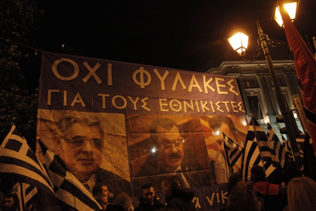 Από τη μεριά του, ο Ηλίας Κασιδιάρης επισήμανε πως «τελειώνει η ώρα των προδοτών του μνημονίου που στήνουν σκευωρίες κατά της Χρυσής Αυγής και την ίδια ώρα ανοίγουν τον δρόμο στους εχθρούς του έθνους, τούρκους, τροϊκανούς και σκοπιανούς».