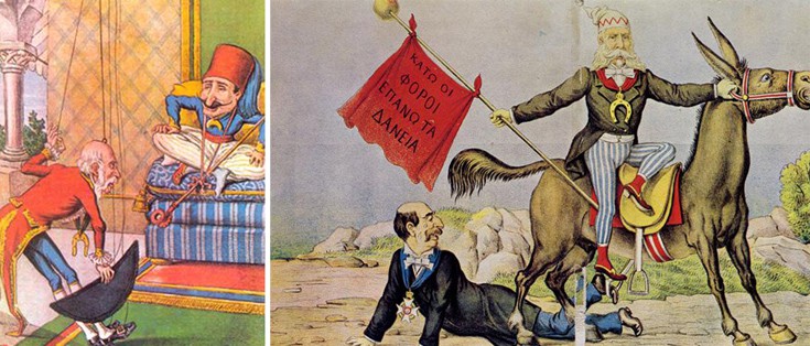 Οι γελοιογραφίες της εποχής τον ήθελαν υπερήφανο για τα προβλήματα που φόρτωσε στην ταλαίπωρη τη χώρα του, καθώς η Ελλάδα δεν μπορούσε να σηκώσει το βάρος του διαχειριστικού Διεθνούς Οικονομικού Ελέγχου που της επιβλήθηκε στα έσοδα των κρατικών μονοπωλίων…