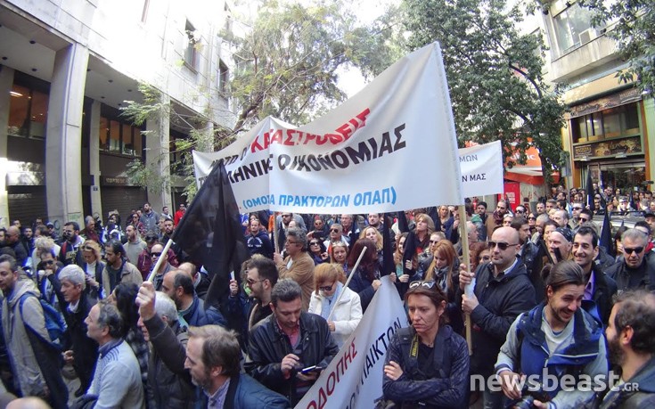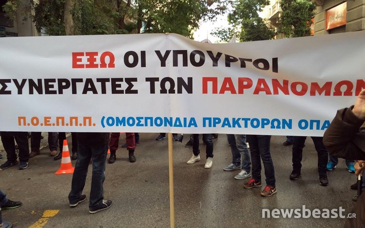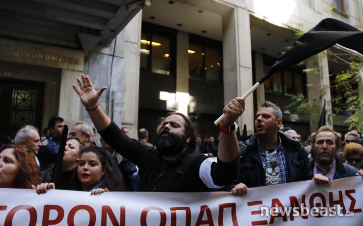 Στο υπουργείο Οικονομικών κατέληξε η πορεία διαμαρτυρίας που πραγματοποίησαν νωρίτερα οι πράκτορες του ΟΠΑΠ, οι οποίοι αντιδρούν στην απόφαση της κυβέρνησης να επιβάλει ειδικό τέλος σε όλα τα τυχερά παιχνίδια.