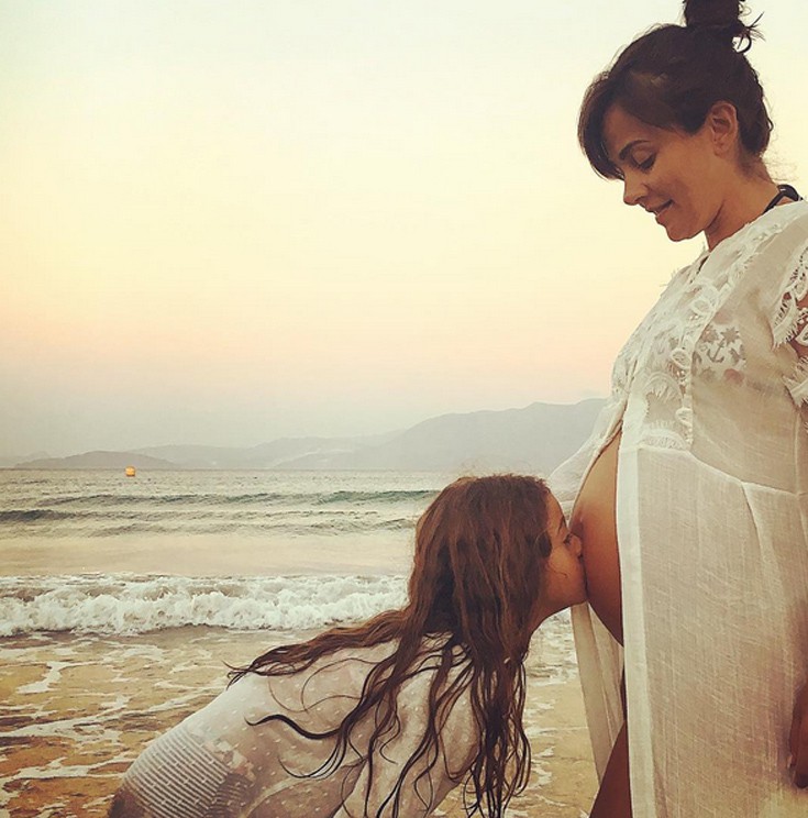 εγκυμονούσα ηθοποιός ποστάρει συνεχώς στα social media φωτογραφίες της με μαγιό δείχνοντας τη φουσκωμένη της κοιλιά, αυτή τη φορά πόζαρε με την κόρη της Λυδία να φιλάει την κοιλιά της και ανέβασε το στιγμιότυπο γράφοντας «Just the three of us» (Οι τρεις μας μόνο).