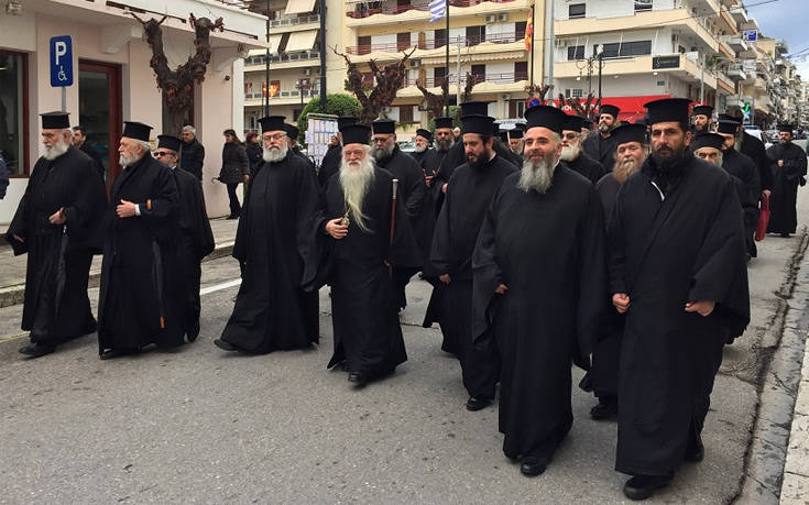 Πορεία πραγματοποίησαν δεκάδες ιερείς στο κέντρο του Αιγίου μετά από εισήγηση του Μητροπολίτη Αιγιαλείας, Αμβρόσιου εκφράζοντας την ανησυχία τους και την αντίθεσή τους για το ονοματολογικό της ΠΓΔΜ.