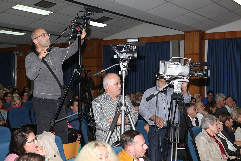 Ο κ.Μπαμπινιώτης αναφέρθηκε στον πιο δημοκρατικό θεσμό, κατά τον Κοραή, την γλώσσα μας που αποτελεί κοινό κτήμα και περιουσία μας. Μαθαίνουμε τις λέξεις όχι για τις λέξεις αλλά για τις έννοιες, για επικοινωνία με νοήματα με τα οποία λειτουργεί η σκέψη. Η γραμματική και το συντακτικό αποτελούν το μηχανισμό της λειτουργίας της γλώσσας.