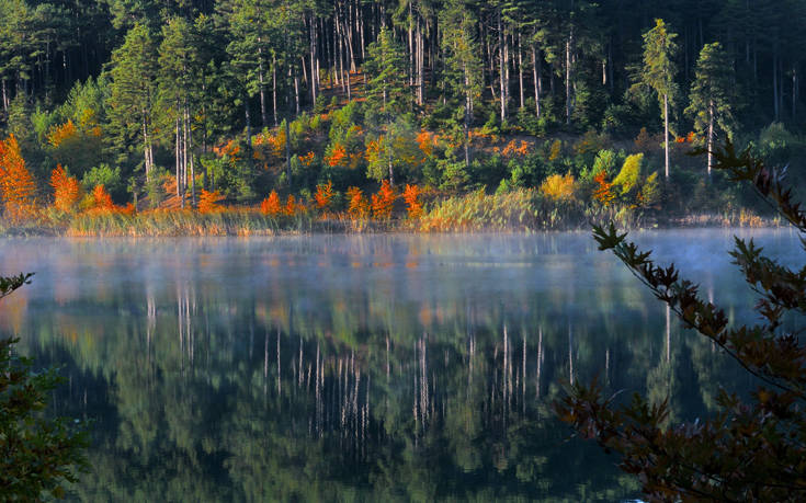 Και μοιάζει το σκηνικό σαν να έχει ξεπηδήσει από πίνακα ζωγραφικής. Πυκνά δάση κοσμούν τα βουνά γύρω από τη λίμνη, ενώ η φύση χαρίζει απλόχερα τα καλύτερα της χρώματα, προσθέτοντας μικρές πινελιές σε αυτό το μωσαϊκό εικόνων.