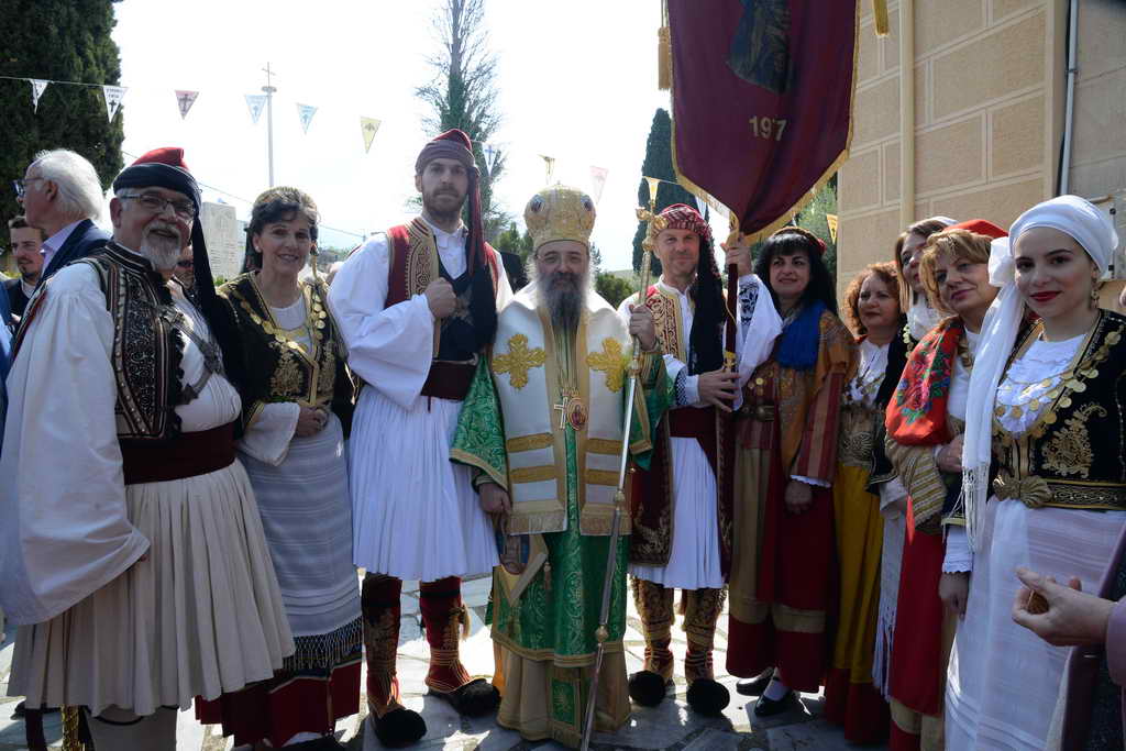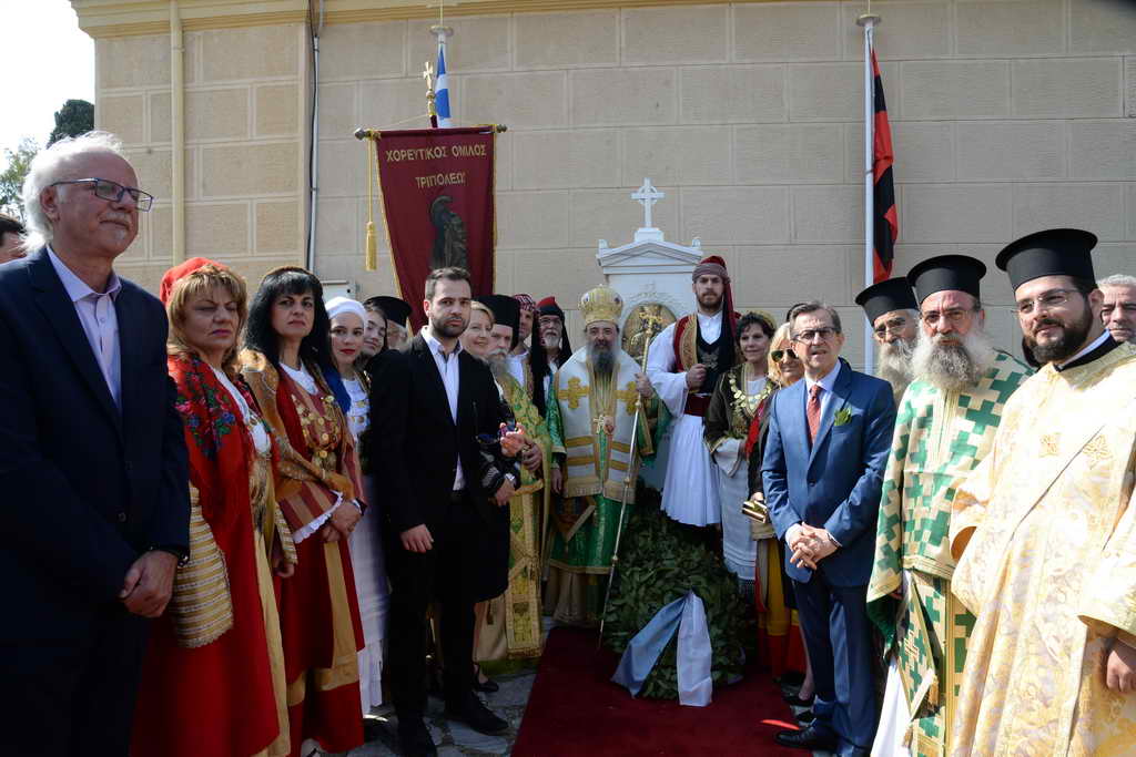 Στήν Θεία Λειτουργία καί στίς ἐκδηλώσεις πρός τιμήν τοῦ Ἣρωος Παπα- Γιώργη, συμμετεῖχαν ντυμένοι μέ τίς ἐθνικές ἐνδυμασίες τά μέλη τοῦ Χορευτικοῦ Ὁμίλου Τριπόλεως, οἱ ὁποῖοι προσῆλθαν στήν Πάτρα μετά τήν συμμετοχή τους στίς ἑορτές τῆς Ἐξόδου στήν Ἱερά Πόλη τοῦ Μεσολογγίου. Ὁ Σεβασμιώτατος τούς εὐχαρίστησε καί τούς εὐχήθηκε συγκινημένος τά δέοντα.