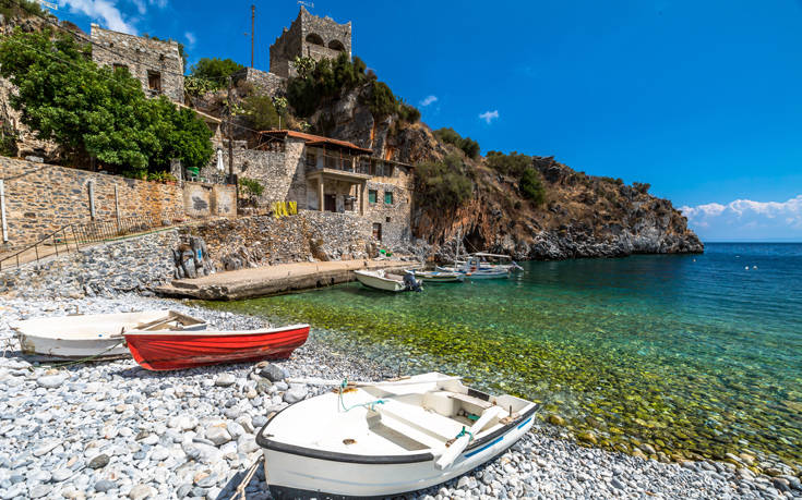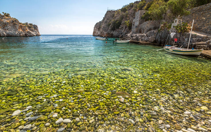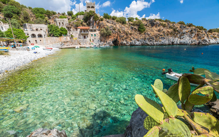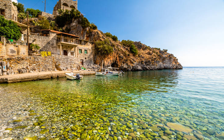 Ένας μικροσκοπικός και ήσυχος, γραφικός κόλπος που φέρει έντονα τα χαρακτηριστικά της περιοχής –πέτρα και σμαραγδένια νερά– και περιβάλλεται από πανέμορφα πυργόσπιτα, που έχει πρωταγωνιστήσει τόσο στα γυρίσματα της ταινίας του Τζον Κασσαβέτη «Tempest», όσο και σε διαφημιστικό γνωστής μάρκας ούζου.