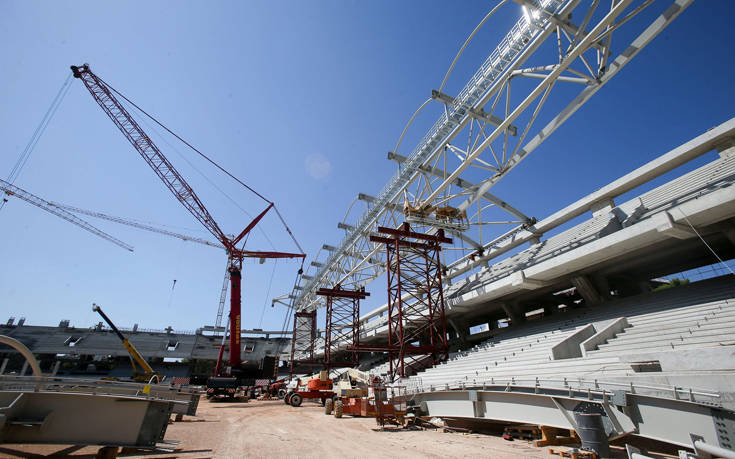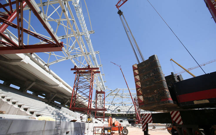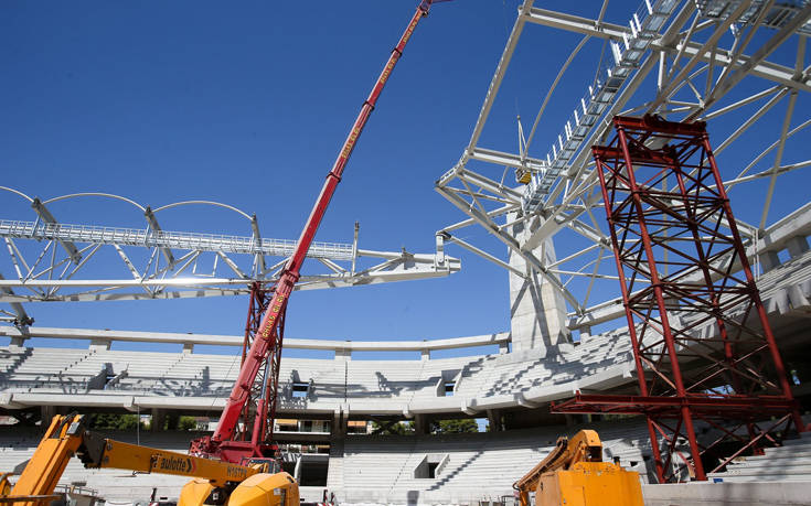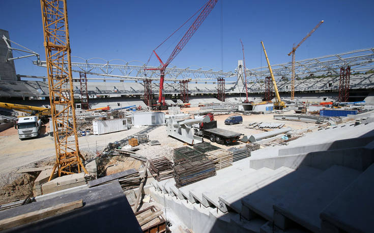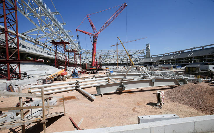 πινελιές για να ολοκληρωθεί το κομμάτι στην παλιά Σκεπαστή, με τον σκελετό του γηπέδου να ολοκληρώνεται.