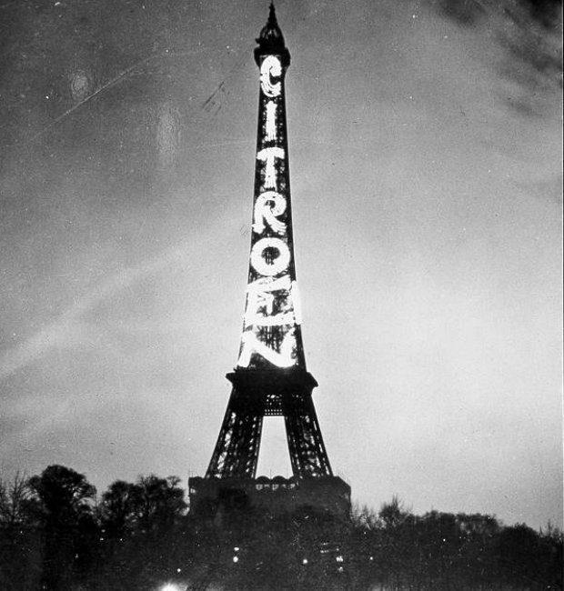 Μεταξύ 1925 και 1934, το όνομα της Citroën εμφανιζόταν σε μια φωτεινή επιγραφή 30 μέτρα ψηλά στον πύργο του Άιφελ (250.000 λαμπτήρες και 600 χιλιόμετρα ηλεκτρικών καλωδίων), προσφέροντας ένα μοναδικό οπτικό αποτέλεσμα.