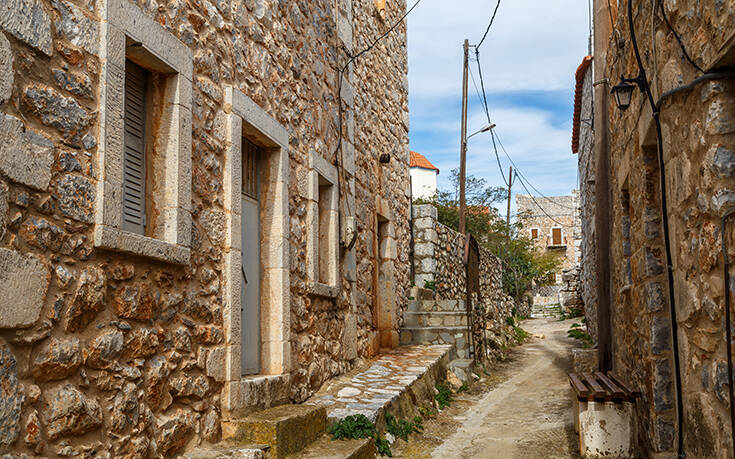 Γεμάτη με πυργόσπιτα και πύργους, που όσο πιο ψηλοί είναι άλλο τόσο στενεύουν, κατασκευασμένοι από τους φημισμένους μαστόρους της περιοχής, το καθένα με την δική του ιστορία που χάνεται στο πέρασμα των χρόνων, μοιάζει με χρονομηχανή που ταξιδεύει πίσω στο παρελθόν. Στενά σοκάκια με καλοδιατηρημένους πύργους που συχνά διαδέχονται από εγκαταλελειμμένους ενδείκνυνται για σεργιάνι στο χωριό, από τα περισσότερα σημεία του οποίου η θέα στη θάλασσα είναι μαγευτική.