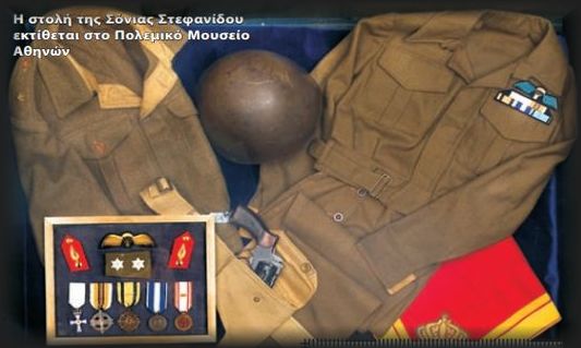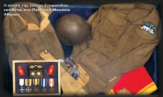 Η στολή και τα παράσημα της Σόνιας Στεφανίδου, εκτίθενται στο Πολεμικό Μουσείο Αθηνών.