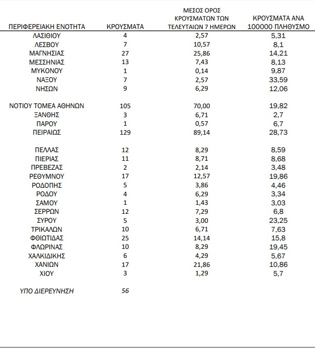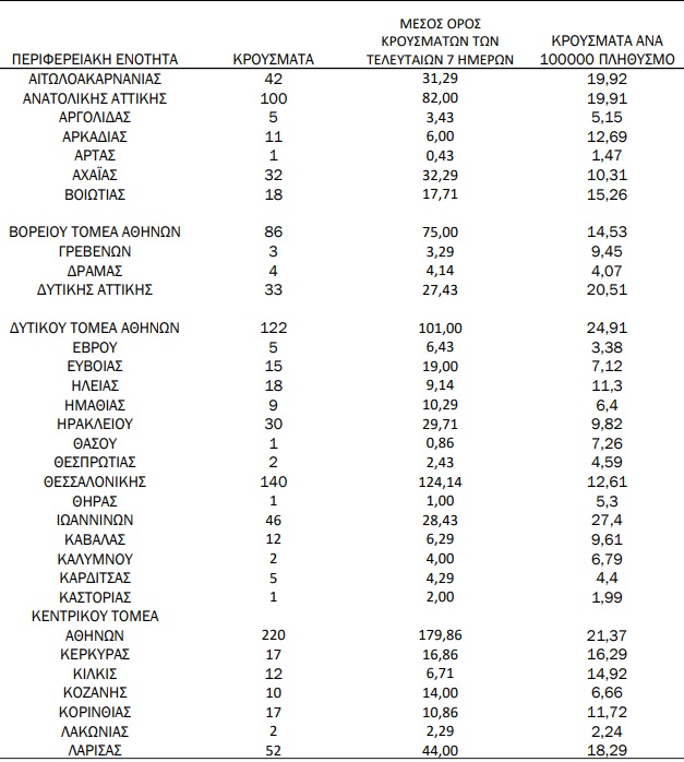 Αναλυτικότερα στην Αττική τα κρούσματα κατανέμονται ως εξής: