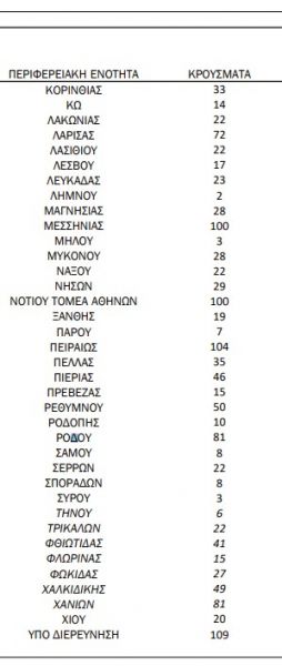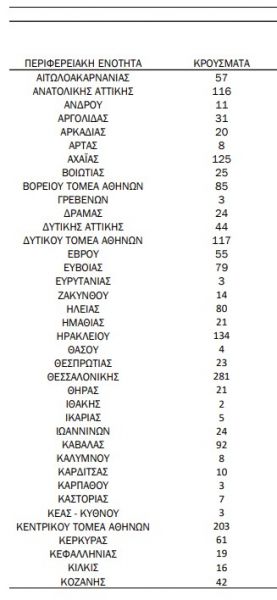 Ο χάρτης της διασποράς δείχνει ακόμα τέσσερις περιοχές εκτός της Αττικής που καταγράφουν τριψήφιο αριθμό κρουσμάτων κορονoϊού.