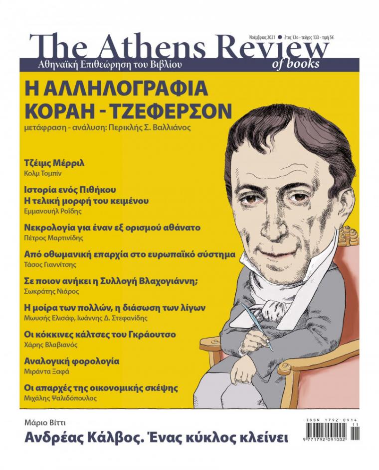 «Όπου και να θολώνει ο νους σας, παροτρύνει ο Ελύτης, να μνημονεύετε Σολωμό και Παπαδιαμάντη. Είναι ανάγκη όμως, στις συνθήκες της νέας εποχής, να αναζητήσουμε και άλλους οδηγούς στο παρελθόν για να ξεθολώσει ο νους και να ανοίξουν τα μάτια. Για παράδειγμα, αδικημένες και ξεχασμένες διάνοιες όπως ο Ροΐδης και ο Κοραής. Τον τελευταίο φέρνει στο προσκήνιο απαιτητικά η μετάφραση και έκδοση της αλληλογραφίας του με τον Αμερικανό πολιτικό και στοχαστή Τόμας Τζέφερσον από τον καθηγητή Π.Σ.Βαλλιάνο στο τεύχος Νοεμβρίου της Athens Review of Books. Με τη βοήθεια της εξαιρετικής εισαγωγής του Βαλλιάνου συναντάμε πάλι τον Κοραή που έθαψε η νεοελληνική ακηδία. Τον Κοραή του δημοκρατικού φρονήματος και της ελεύθερης κρίσης, τον Κοραή της γερής παιδείας και ακμαίας σκέψης, τον μάστορα της γραφής και τον απροκατάληπτο πατριώτη, τον μετρημένο πολιτικό στοχαστή και τον ανεξίθρησκο σχολιαστή, τον λόγιο που συνδυάζει την ευρωπαϊκή μεθοδικότητα με την ευέλικτη δυσπιστία του Έλληνα της Ανατολής. Και πολλά άλλα θα μπορούσε να προσθέσει κανείς. Επιστροφή λοιπόν στον Κοραή για να ανοίξει ο νους και να προκόψει η κρίση σε μια εποχή που κυριαρχούν η τυφλότητα των κάθε κοπής ιδεολόγων και ο φανατισμός των πάσης φύσεως πιστών. Η αλληλογραφία Κοραή-Τζέφερσον μας θυμίζει ένα ακόμη ανεξόφλητο χρέος».