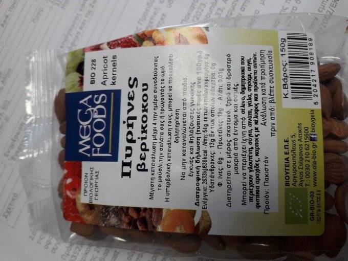 Α) το προϊόν με εμπορική ονομασία «Mega Foods πυρήνες βερίκοκου», βάρους 150 γρ., παρτίδας 228241022 και ανάλωση κατά προτίμηση πριν από 31/12/23, το οποίο διακινήθηκε από την εταιρεία «ΒΙΟΥΓΕΙΑ ΕΠΕ». Η επιχείρηση έχει ήδη προβεί στην ανάκληση του προϊόντος.