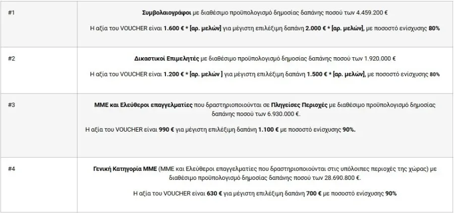 Ενδεικτικά, οι δικαιούχοι δύναται να αξιοποιήσουν τις επιταγές (vouchers) για αγορά tablets, laptops, scanners, ρολόγια ωρομέτρησης κ.α.