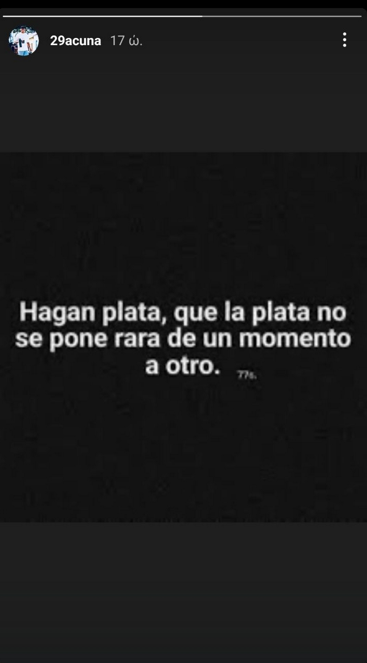 Λίγες ώρες πριν βάλει τέλος στη ζωή του, ο Ματίας Ακούνια ανέβασε αυτό το story στον λογαριασμό του στο Instagram. "Να βγάζετε χρήματα, επειδή τα χρήματα δεν γίνονται σπάνια από τη μια μέρα στην άλλη".