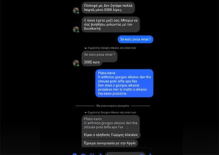 Η ανάρτηση συνοδεύεται από αποδεικτικό στιγμιότυπο συνομιλίας, στο οποίο φαίνεται το ψεύτικο προφίλ να ζητά το χρηματικό ποσό των 3000 ευρώ από χρήστη των social media.