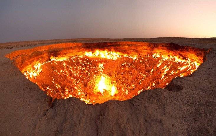 «Αυτός ο γιγαντιαίος κρατήρας κοντά στο χωριό Νταρβάζα που είναι ευρέως γνωστός ως 'Πύλες της κολάσεως', ρίχνει μια απόκοσμη λάμψη που είναι ορατή από μίλια μακριά. Είναι το αποτέλεσμα ενός σοβιετικού ατυχήματος γεώτρησης, με τον κρατήρα να καίει ασταμάτητα από το 1971» - Tom McDermott/Μπλόγκερ.