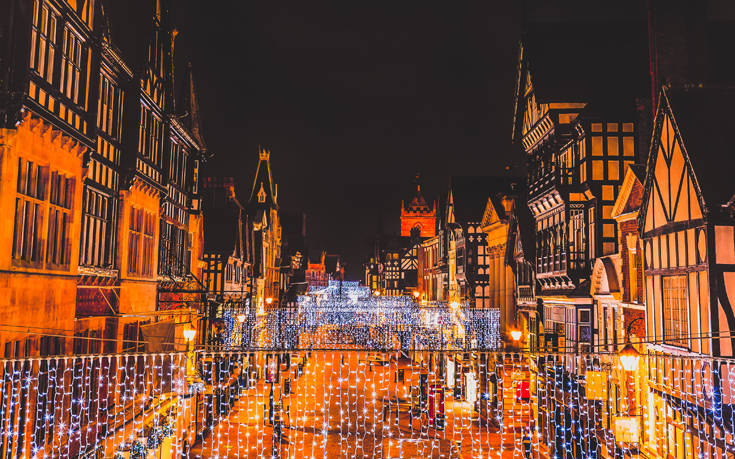 Λιγότερο εμπορική, αλλά περισσότερο νοσταλγική η ατμόσφαιρα που χαρακτηρίζει αυτές τις μέρες το χριστουγεννιάτικο Τσέστερ, κοντά στα σύνορα της Μεγάλης Βρετανίας με την Ουαλία. Χοντρά ρούχα και ένα ποτήρι ζεστό, κόκκινο κρασί είναι ό,τι πρέπει για την περιπλάνηση του επισκέπτη στη χριστουγεννιάτικη αγορά με τα περισσότερα από 70 ξύλινα σπιτάκια- τύπου σαλέ, στο κέντρο της πόλης, γύρω από το επιβλητικό δέντρο.