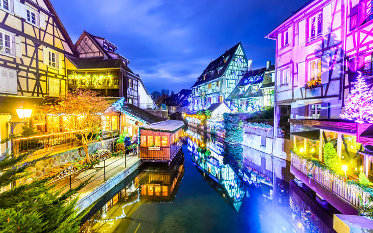Στον αντίποδα του υπέρλαμπρου Παρισιού, η μικρή και γραφική Κολμάρ, στο βορειοανατολικό τμήμα της Γαλλίας, προσφέρει αυτό που λέμε το «χριστουγεννιάτικο παραμύθι». Παραδοσιακά, χρωματιστά κτήρια «ντύνονται» με την χριστουγεννιάτικη «ενδυμασία» τους και μεταμορφώνονται σε ένα σκηνικό πασπαλισμένο με τη μαγεία των Χριστουγέννων.