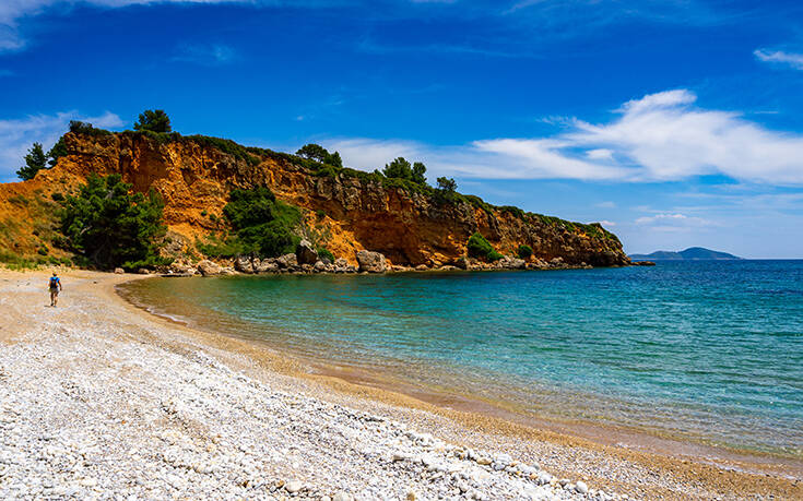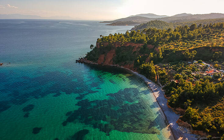 λόγος για το Κοκκινόκαστρο με τη βαθιά γαλάζια θάλασσα, τους απότομους βράχους, την κίτρινη άμμο, τις πολύχρωμες πέτρες και τα πράσινα πεύκα.