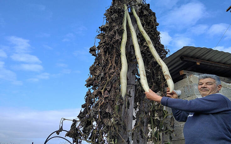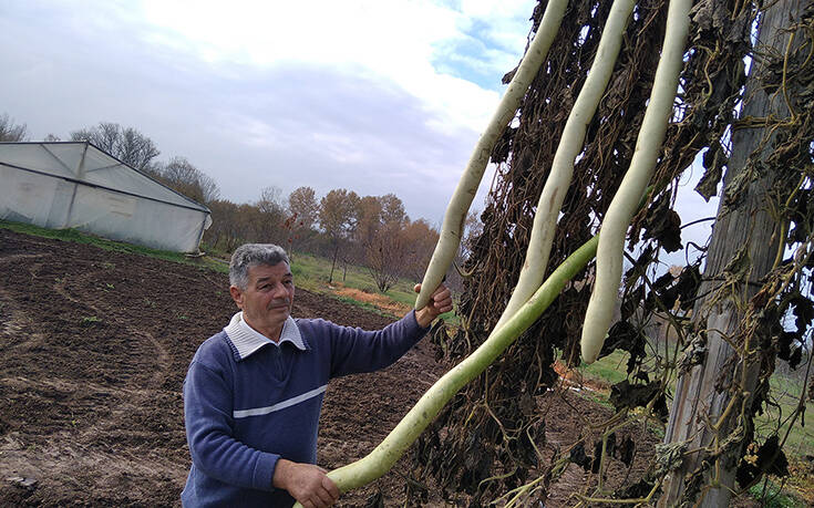 Κολοκύθες που φτάνουν τα δύο μέτρα καλλιεργεί ένας Λαρισαίος στο κτήμα που διαθέτει στη Γιάννουλη.