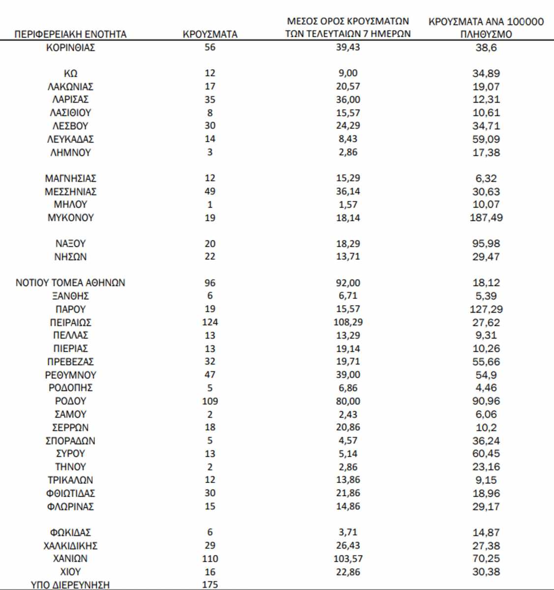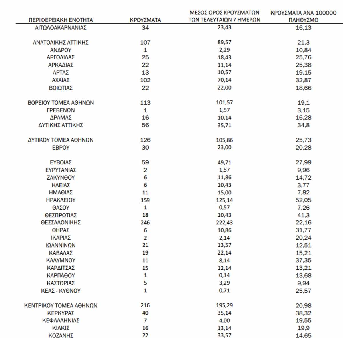 Αττική μετρά συνολικά 804 νέα κρούσματα, η Θεσσαλονίκη 246 και η Κρήτη συνολικά 324 (σ.σ. 159 στο Ηράκλειο, 8 στο Λασίθι, 47 στο Ρέθυμνο και 110 στα Χανιά)