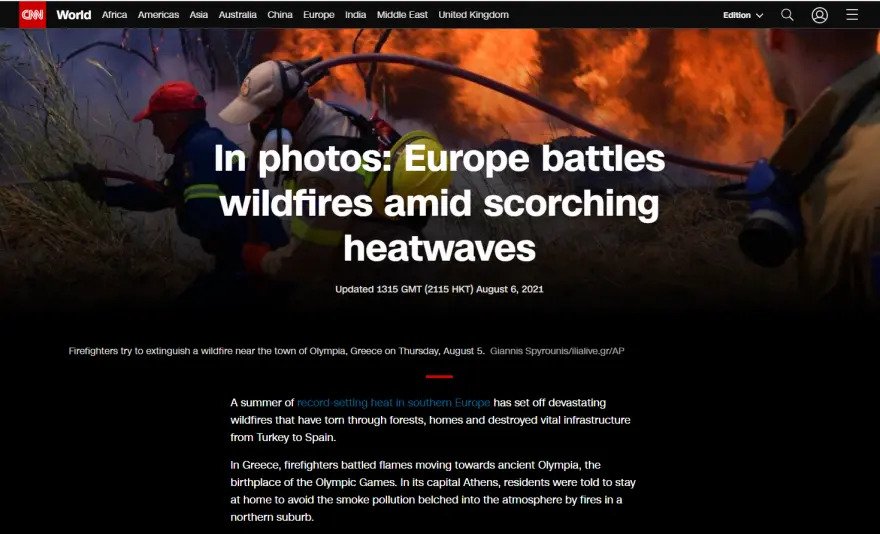 Το πρακτορείο σημειώνει ότι η Ελλάδα, όπως και η υπόλοιπη Ευρώπη, αντιμετωπίζει ακραίες καιρικές συνθήκες αυτό το καλοκαίρι.