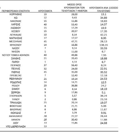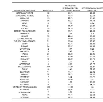 Αναλυτικότερα τα κρούσματα στις περιφερειακές ενότητες που ανήκουν στην Αττική: