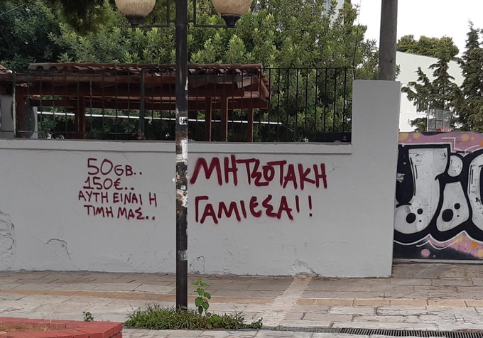 Εξω απο σχολείο στην Φιλαδέλφεια γονείς και μαθητές αντίκρισαν αυτή την εικόνα τη πρώτη μέρα στο σχολείο. Προπαγάνδα υποκινουμεμη απο το συριζα για να γίνει σύνθημα στα αδουλευτα παιδικά μυαλά. Ο διευθυντής γιατί δεν μερίμνησε να τα σβησει πριν την έναρξη της χρονιάς; #σχολεια