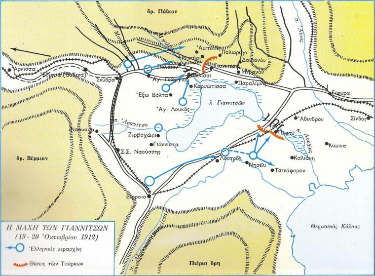 Η σπουδαιότερη σε σημασία μάχη του Α’ Βαλκανικού Πολέμου, που διεξήχθη στις 19 και 20 Οκτωβρίου 1912 στην τότε Γενιτσά (Γενιτζέ ι Βαρντάρ για τους Τούρκους) του σημερινού νομού Πέλλας, ανάμεσα στον ελληνικό στρατό υπό τον αρχιστράτηγο Κωνσταντίνο και...