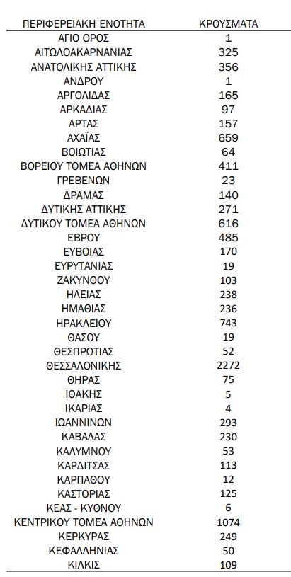 Ειδικότερα, στην Αττική τα κρούσματα κατανέμονται ως εξής: