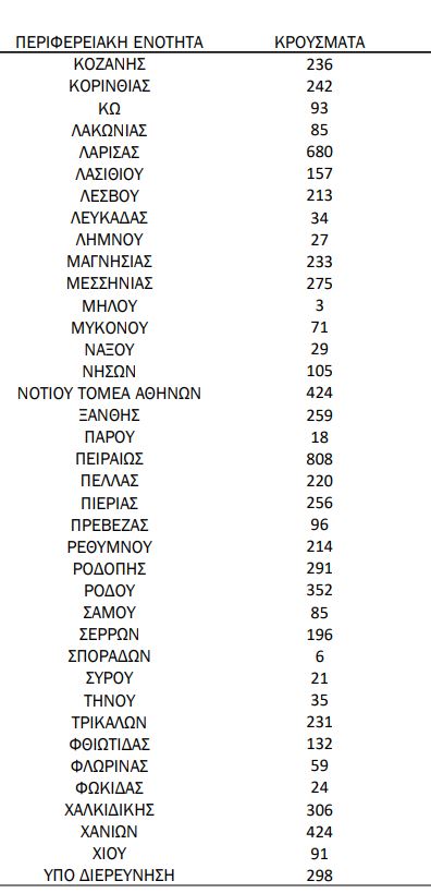 Στην Κρήτη η κατανομή των κρουσμάτων είναι η ακόλουθη: