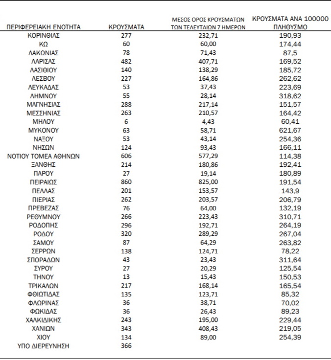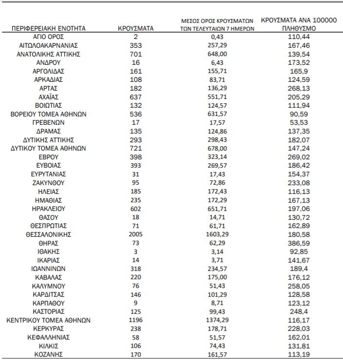 Ειδικότερα, στην Αττική τα κρούσματα κατανέμονται ως εξής:
