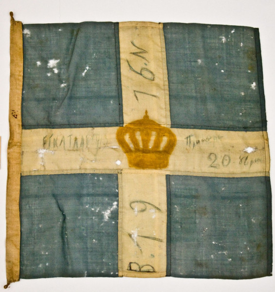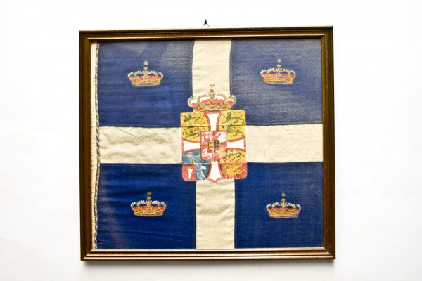 Από την πειρατική σημαία του στολίσκου των Σταθά και Νικοτσάρα , το μοτίβο του λευκού σταυρού σε γαλάζιο κάμπο, καθιερώθηκε ως εθνικό διακριτικό των πολεμικών πλοίων του ελληνικού κράτους στα 200 χρόνια της ύπαρξής του. Είναι το επίσημο, η μικρή σημαία που επαίρεται στην περιοχή της πλώρης όταν τα πλοίο είναι αγκυροβολημένο. Είναι το μοτίβο του επισείοντα, της μακρόστενης βαθυκύανης με ένα μικρό λευκό σταυρό σημαίας, που φέρουν τα μάχιμα πολεμικά πλοία Είναι ο καμβάς όπου τοποθετούνται θυρεοί και διακριτικά σύμβολα βασιλέων, πρωθυπουργών, υψηλόβαθμων αξιωματούχων.