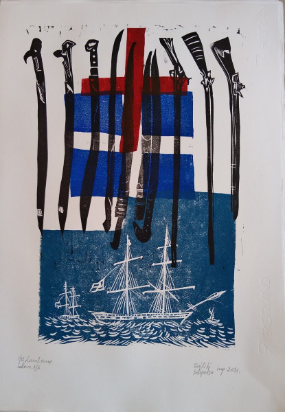 Στο Ναυτικό Μουσείο της Ελλάδος μαζί με τα έργα των καλλιτεχνών της έκθεσης παρουσιάζονται σημαίες και εμβλήματα, κειμήλια από ένδοξα πλοία και προσωπικότητες του νεότερου και σύγχρονου ελληνικού Πολεμικού Ναυτικού, όπως ο μετάξινος επισείοντας του θωρακισμένου καταδρομικού «Γεώργιος Αβέρωφ» , τα επίσημα των αντιτορπιλικών «Λέων» του 1916 και «Αδρίας» του 1943, τα εμβλήματα των Αρχηγών Γενικού Επιτελείου Ναυτικού και Στόλου κατά τον Β΄ Παγκόσμιο Πόλεμο, 1940-41, κ.α.