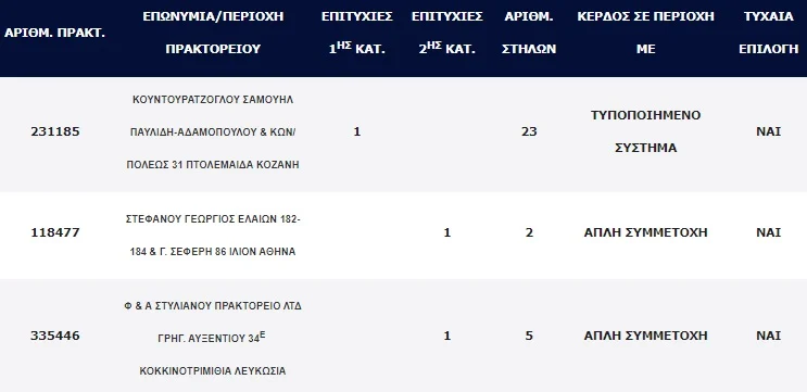 Την ίδια στιγμή, εξάλλου, βρέθηκαν και δυο επιτυχίες στην δεύτερη κατηγορία (5αρια), που κερδίζουν από 100.000 ευρώ έκαστη.