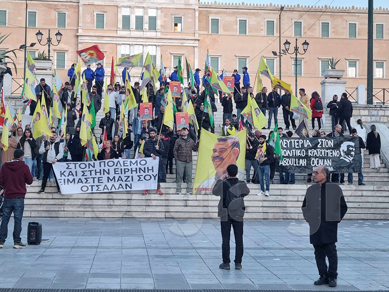 Οι Κούρδοι, μετά από κάλεσμα του Πολιτιστικού Κέντρου Κουρδιστάν, συγκεντρώθηκαν στην πλατεία Συντάγματος και φώναξαν συνθήματα κατά του τουρκικού κράτους και του Ερντογάν -«Ερντογάν τρομοκράτη» ήταν ένα από τα βασικά που ακούστηκαν. Το Σάββατο 15/2,σημειωτέον, συμπληρώθηκαν 26 χρόνια από τον εγκλεισμό του ηγέτη του PKK Αμπντουλάχ Οτσαλάν.