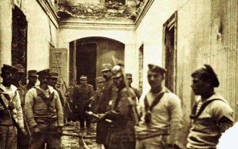 Μια φωτογραφία σώζεται από τότε, και η οποία απεικονίζει τις δραματικές εκείνες στιγμές. Ανήκει σε ένα πελάτη του ξενοδοχείου «Μεγάλη Βρετάνια». Λεγόταν...