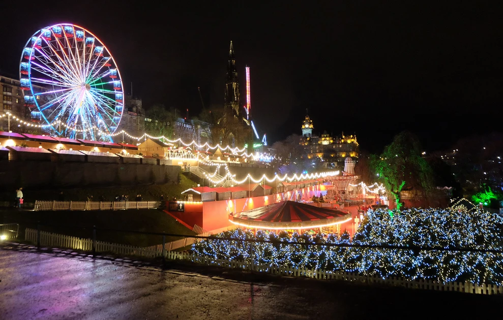 Οι βόλτες με τη ρόδα προσφέρουν πανοραμική θέα στο ιστορικό κέντρο, ενώ οι μυρωδιές από φαγητό και ζεστά ροφήματα βοηθούν να ξεχάσετε το κρύο. Το γιορτινό λούνα παρκ στους Princes Street Gardens ολοκληρώνει την εμπειρία και είναι ιδανικό τόσο για οικογένειες όσο και για ζευγάρια.
