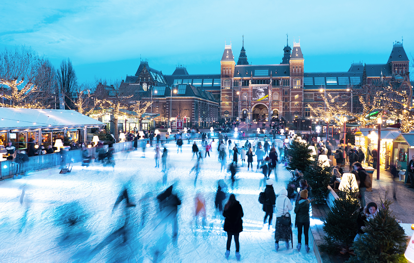 Στο Άμστερνταμ, τα Χριστούγεννα έχουν σύγχρονο χαρακτήρα. Το Amsterdam Winter Paradise μεταμορφώνει το συνεδριακό κέντρο RAI σε ένα αλπικό χωριό με εσωτερικά και εξωτερικά παγοδρόμια, χιονοπόλεμους και χειμερινά παιχνίδια. Ένας μεγάλος τροχός προσφέρει θέα που θυμίζει τον χαρακτηριστικό ορίζοντα της πόλης.