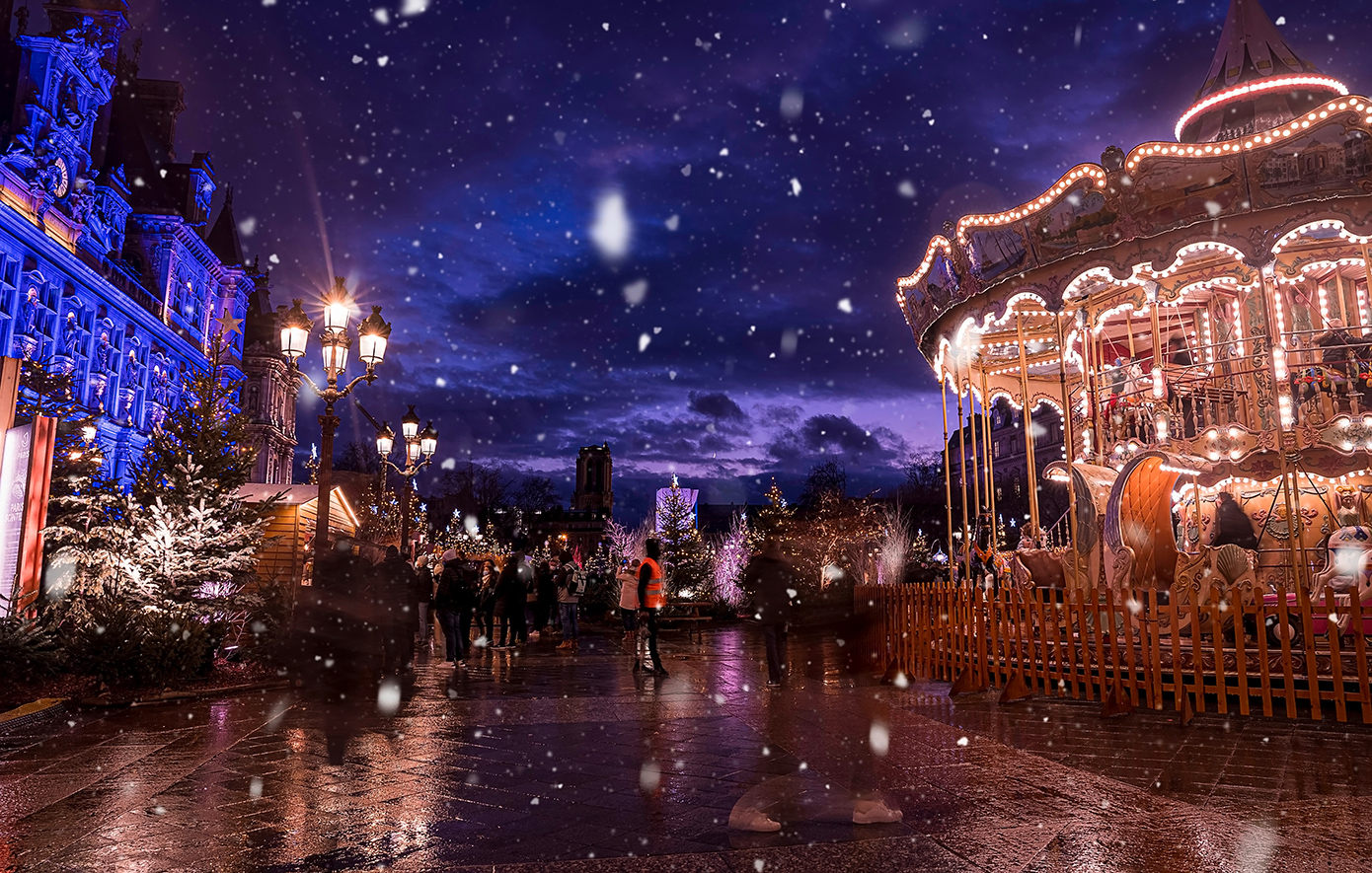 Ο εντυπωσιακός τροχός προσφέρει θέα στον φωτισμένο Πύργο του Άιφελ, ενώ το παγοδρόμιο και το τρενάκι του Άγιου Βασίλη ενθουσιάζουν μικρούς και μεγάλους. Περισσότερα από 100 σαλέ προσφέρουν γαλλικά προϊόντα -τυριά, σοκολάτες, ζεστό κρασί- και η βραδιά ολοκληρώνεται ιδανικά σε ένα ιγκλού, με ένα ποτήρι σαμπάνια στο χέρι.