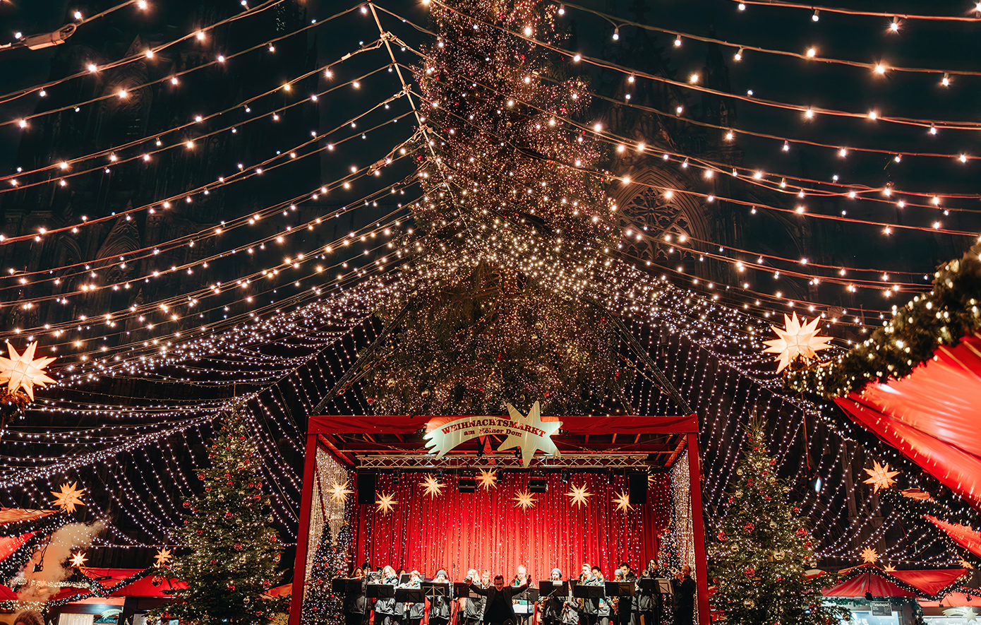 Η Γερμανία θεωρείται δικαίως η πατρίδα των χριστουγεννιάτικων αγορών, και η Κολωνία είναι ένα από τα πιο χαρακτηριστικά της παραδείγματα. Η μεγαλύτερη αγορά, μπροστά από τον γοτθικό καθεδρικό ναό, απλώνεται κάτω από ένα θόλο με χιλιάδες φωτάκια, δημιουργώντας μια σκηνή βγαλμένη από καρτ ποστάλ.