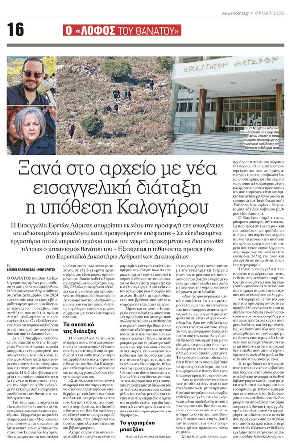 Η προσφυγή της οικογένειας Καλογήρου κατά της αρχειοθέτησης υπόθεσης (πιθανόν σχετιζόμενης με την Εισαγγελία Λάρισας και θέματα διαφάνειας/δικαιοσύνης) απορρίφθηκε σε ελληνικό επίπεδο, αλλά...