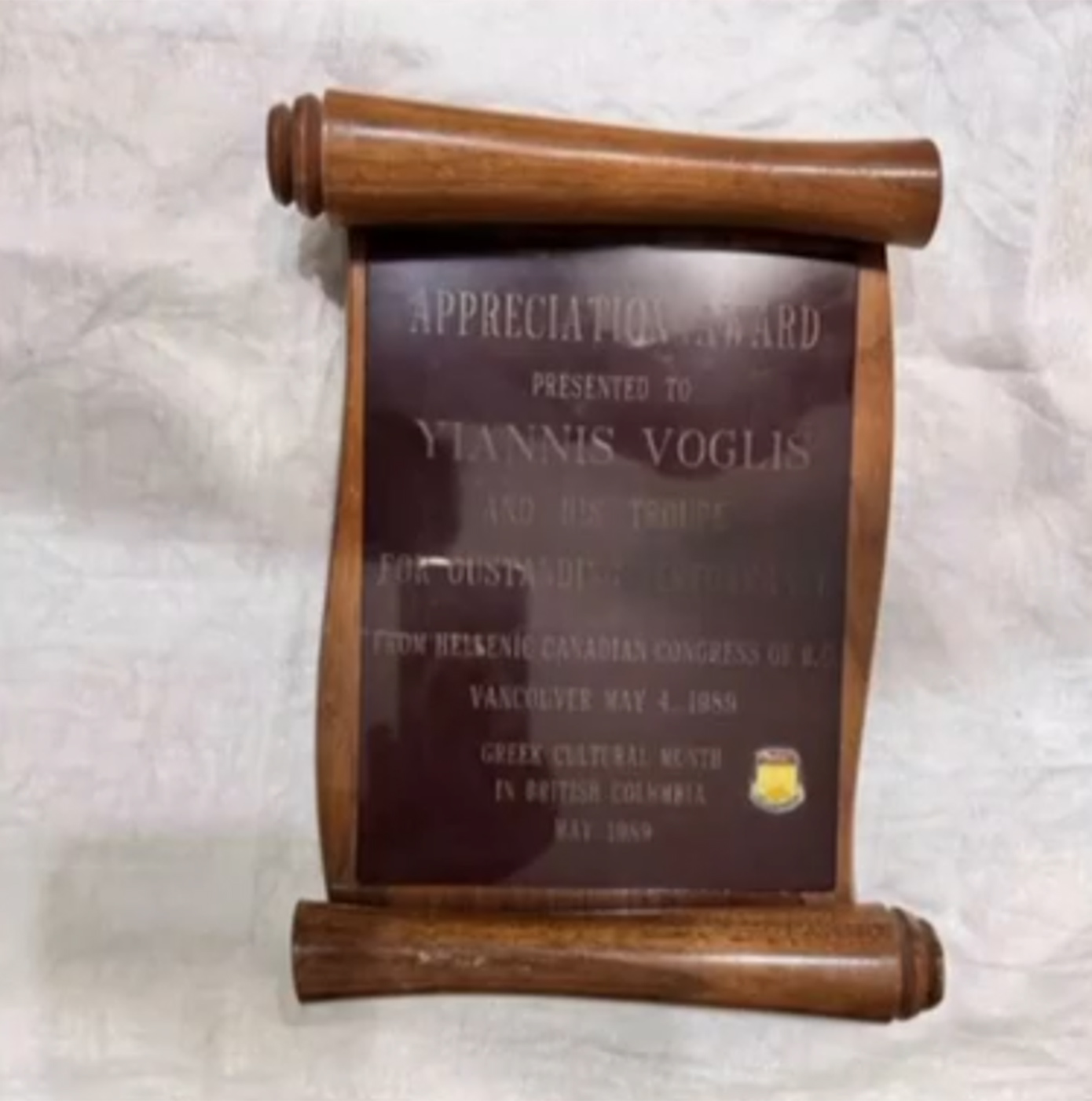 Η ιστορία ξεκίνησε όταν ένας πολίτης εντόπισε πάνω σε ένα τραπέζι, δίπλα στον δρόμο, τα τιμητικά βραβεία μαζί με έναν φακό, έναν αναπτήρα και μια μπρούτζινη βάση. Όπως ανέφερε ο γιος του ηθοποιού, τα κειμήλια αυτά φυλάσσονταν στο σπίτι του Γιάννη Βόγλη στην Παλλήνη όσο εκείνος ήταν εν ζωή.