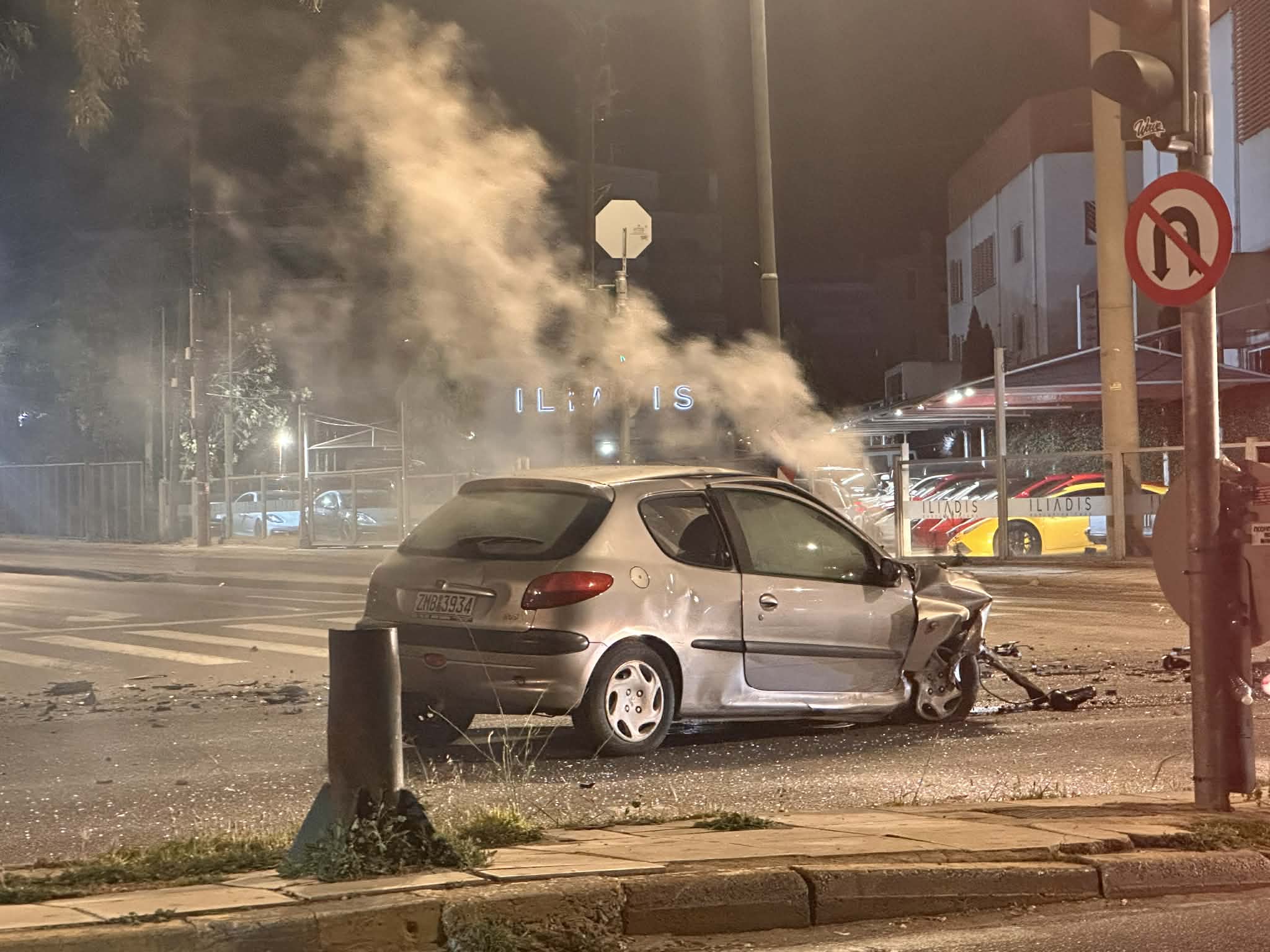 Η σφοδρότητα της σύγκρουσης γίνεται αντιληπτή και από τα συντρίμμια των αυτοκινήτων, τα οποία υπέστησαν σοβαρές υλικές ζημιές.