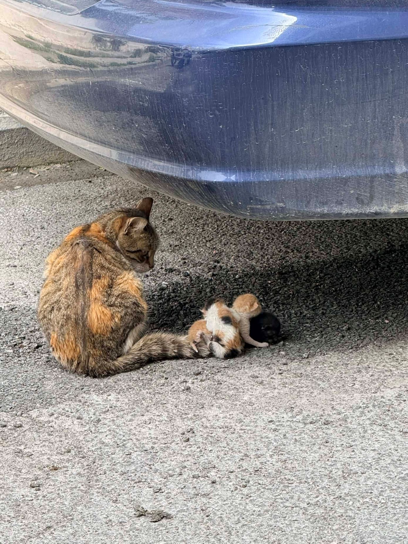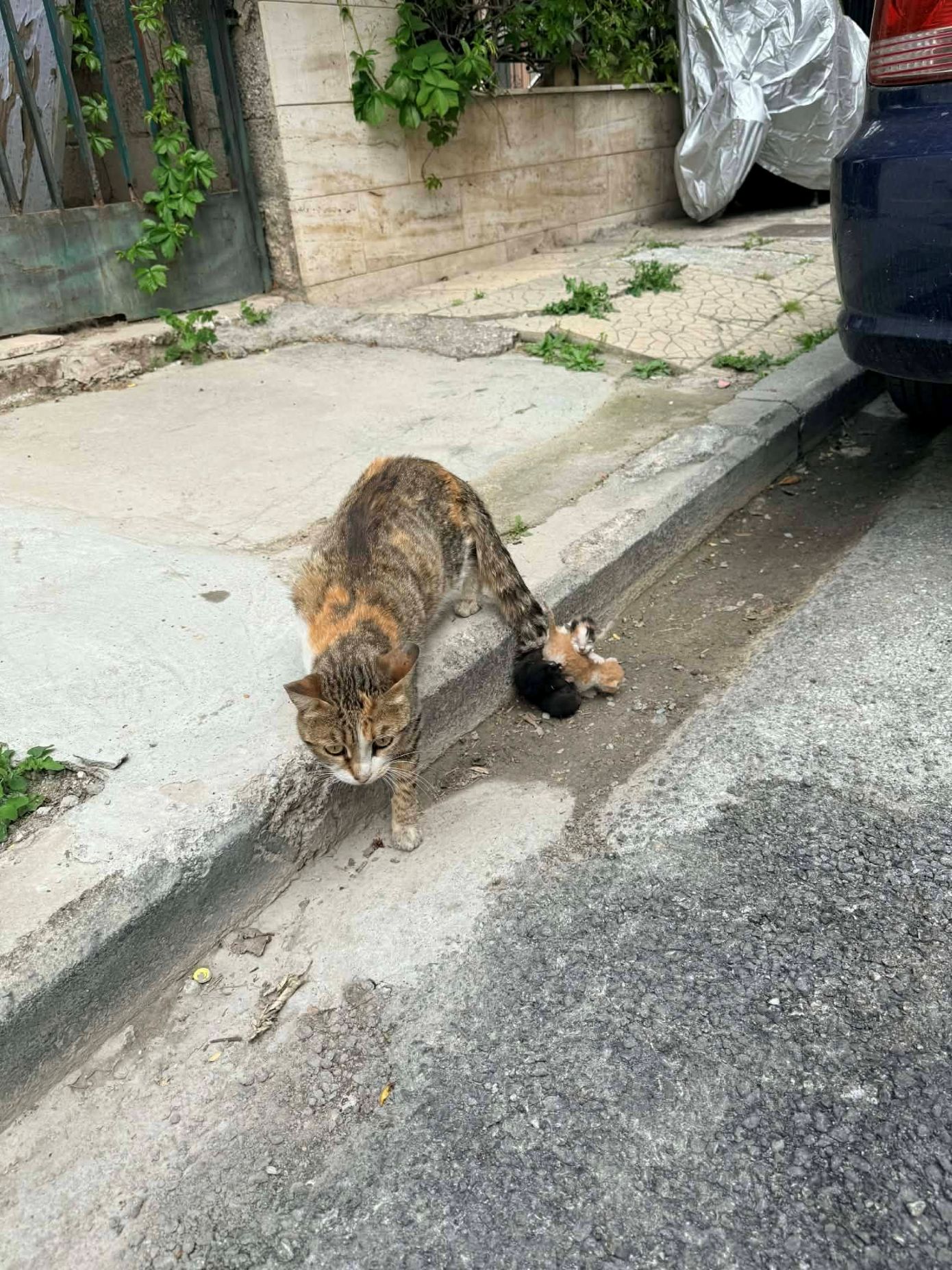 Σύμφωνα με το gegonota.news, το περιστατικό έγινε αντιληπτό από κατοίκους της περιοχής, όταν φιλόζωη είδε τη γάτα να κινείται πανικόβλητη. Σύμφωνα με την ίδια, η γάτα ήταν ιδιαίτερα τρομαγμένη και δεν ήταν δυνατό να προσεγγιστεί άμεσα, ενώ τα μικρά είχαν υποστεί τραυματισμούς από την τριβή στην άσφαλτο.